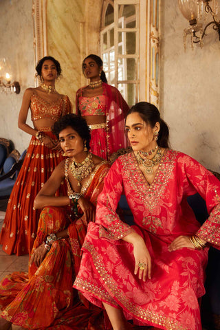 Discover our exquisite range of elegant wedding attire, featuring breathtaking bridal lehengas, indo-western kurtas, and timeless sarees. Each piece is crafted with intricate detailing and luxurious silk fabrics, designed to make you feel radiant as you celebrate love and commitment.