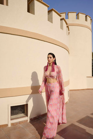 Amber Jacket Set with Palazzo In Rose Print Red