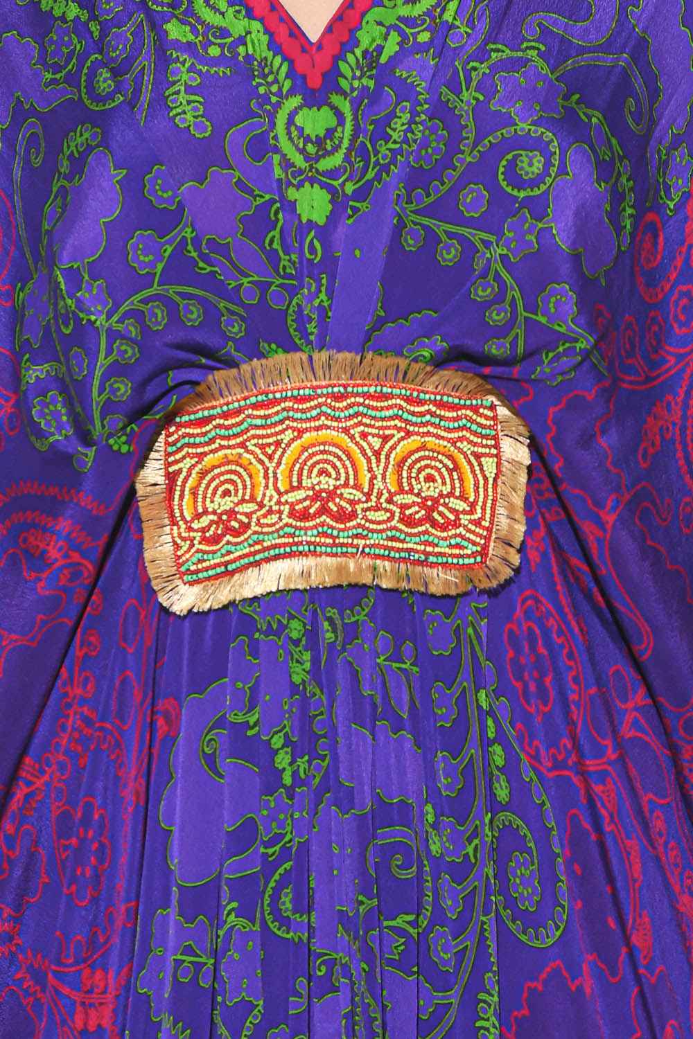 Violet Green Paisley Belt Kaftan