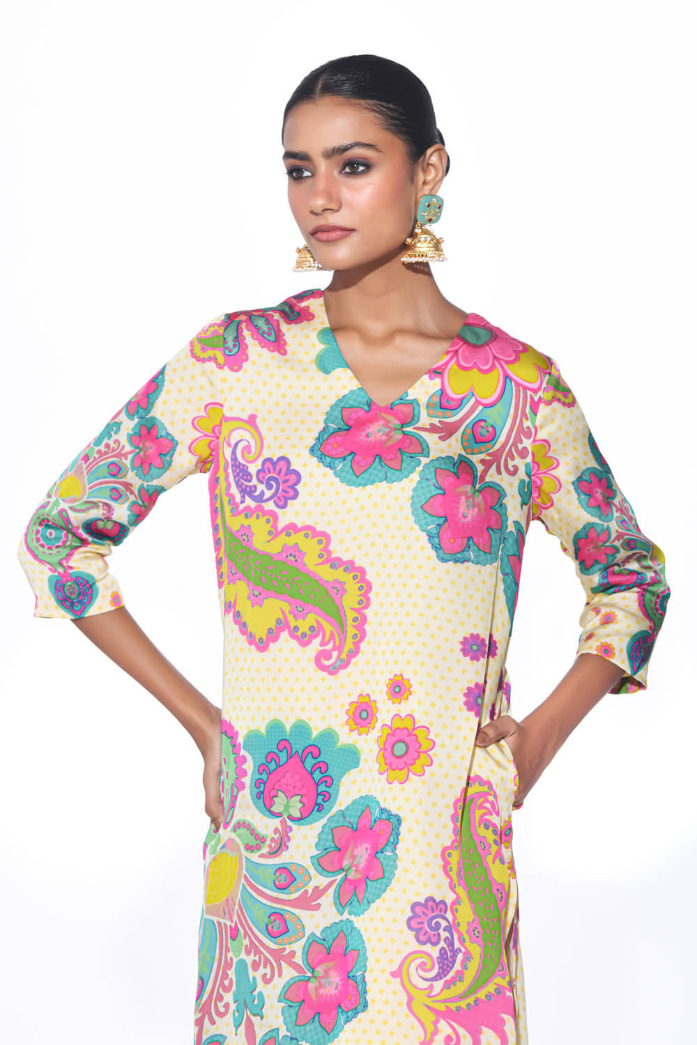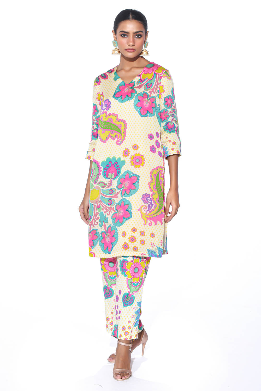 Blush Cream Paisley Print Kurta Co-Ord Set