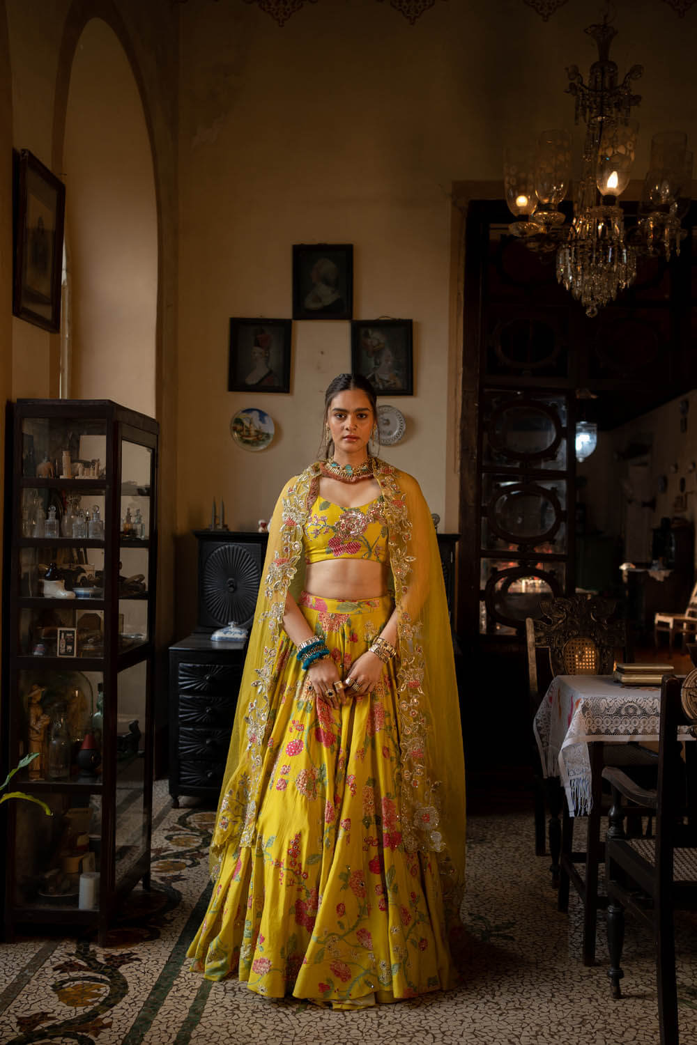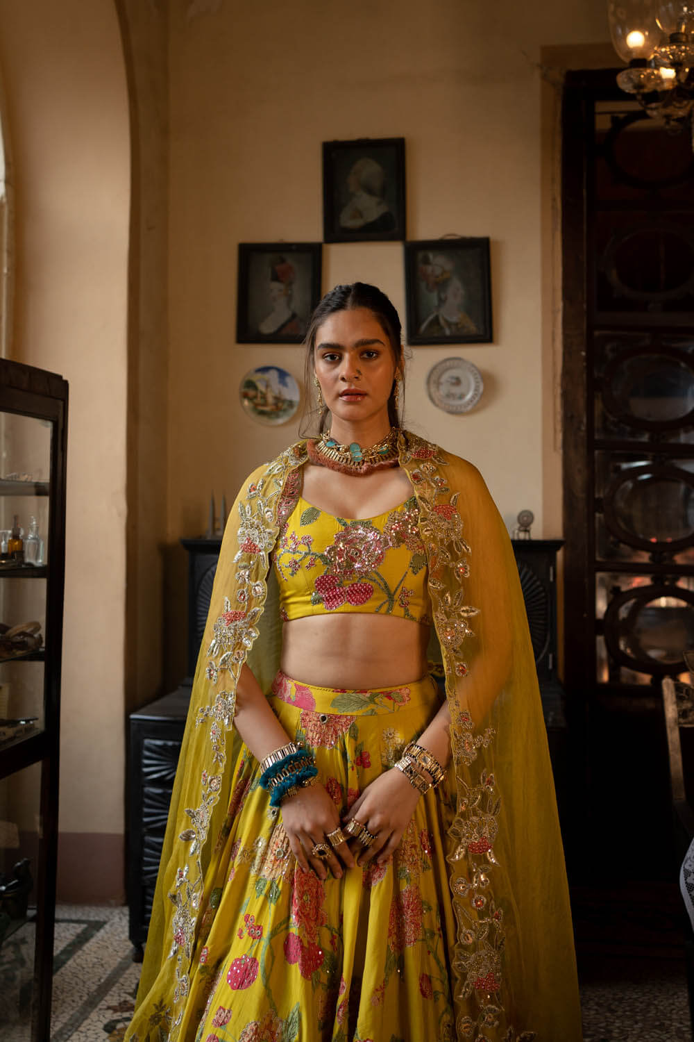 – Attached lining on lehenga and blouse