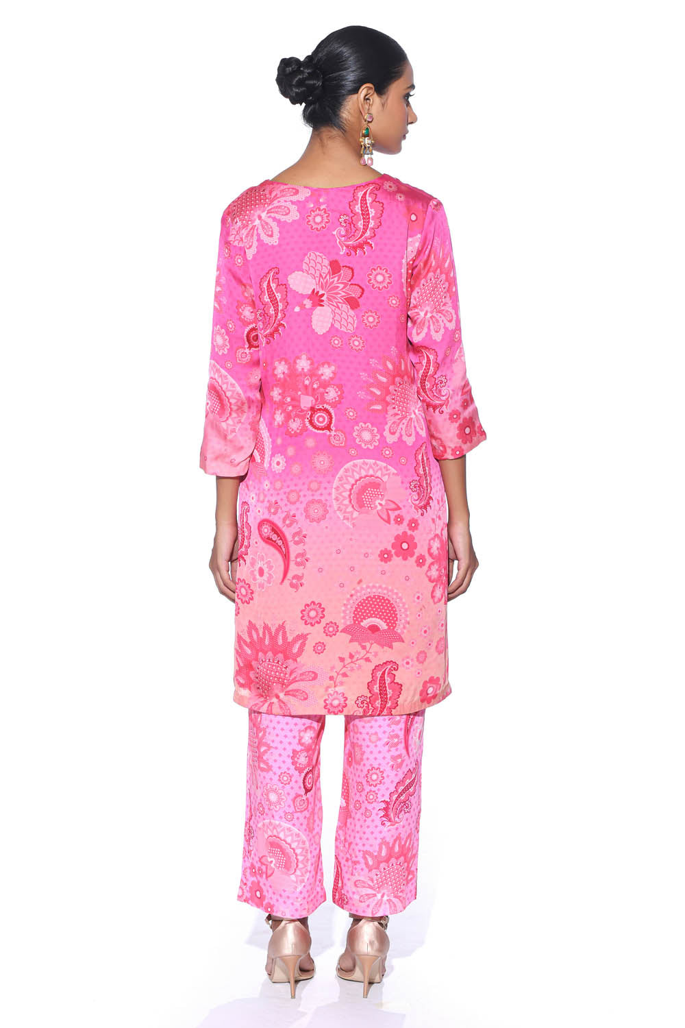 Rani Pink Ombre Sb Signature Self Paisley Print Kurta Paired With Matching Pants, Co-Ord Set.